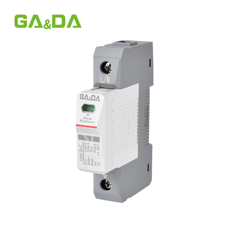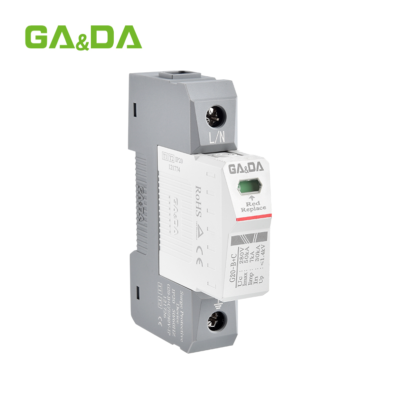 The G20-B+C series surge protector integrates Type 1 and Type 2 protection in a compact, high-performance design. With a discharge capacity of 7–30kA, it effectively shields power systems from lightning and switching surges. Constructed from high-quality flame-retardant materials, it features thermal disconnection, visual indicators, and a modular replaceable cartridge. DIN rail mounting ensures simple installation and easy maintenance.