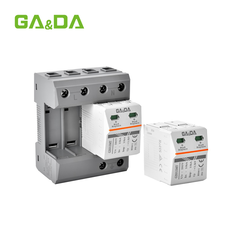 The G2015MT Type 1 surge protective device is designed for heavy-duty protection against lightning and surge voltages in industrial electrical systems. It integrates high-performance metal oxide varistor (MOV) and gas discharge tube (GDT) technology for rapid response and high surge current capacity. The modular DIN rail design allows easy installation and maintenance, while the flame-retardant housing ensures reliable performance even under harsh environments.