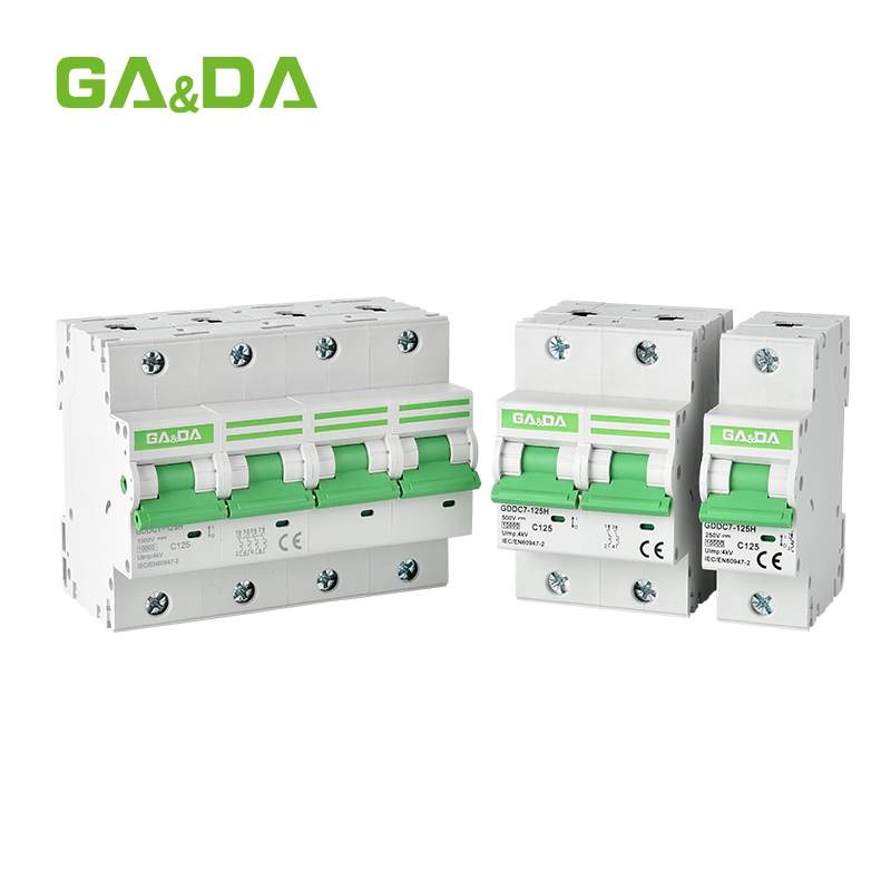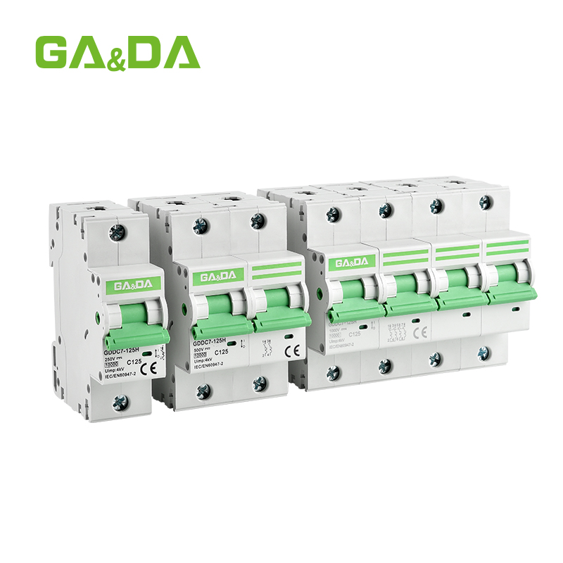 The GDDC7-125 DC miniature circuit breaker is designed for safe and efficient protection of DC circuits up to 1000V. Built with a high breaking capacity and flame-retardant casing, it ensures reliable performance in solar PV systems, energy storage setups, and DC distribution networks. Available in 1P, 2P, 3P, and 4P configurations, this compact MCB provides quick installation, stable operation, and long service life for industrial and renewable energy applications.